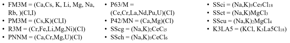 - The database .dat files are in the FactSage® ChemSage ASCII format and contain all vapor species, compounds, and solutions within MSTDB-TC for fluoride- and chloride-based systems, each including reciprocal iodide components. Distinct .dat files are provided for fluoride and chloride systems utilizing the following file names